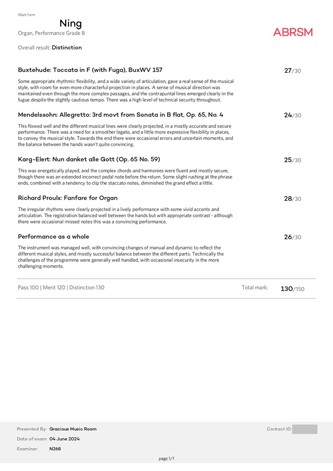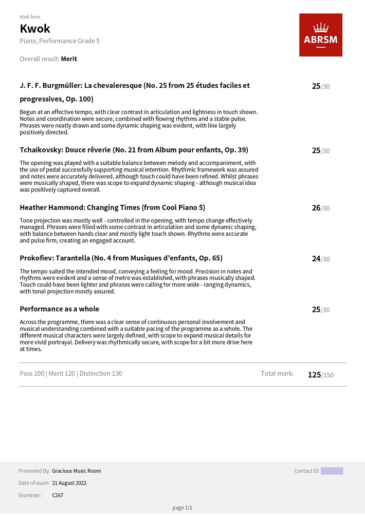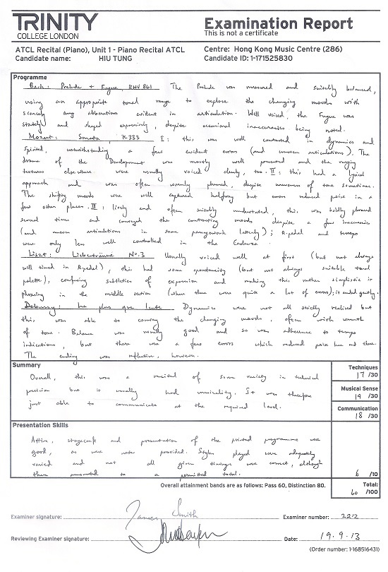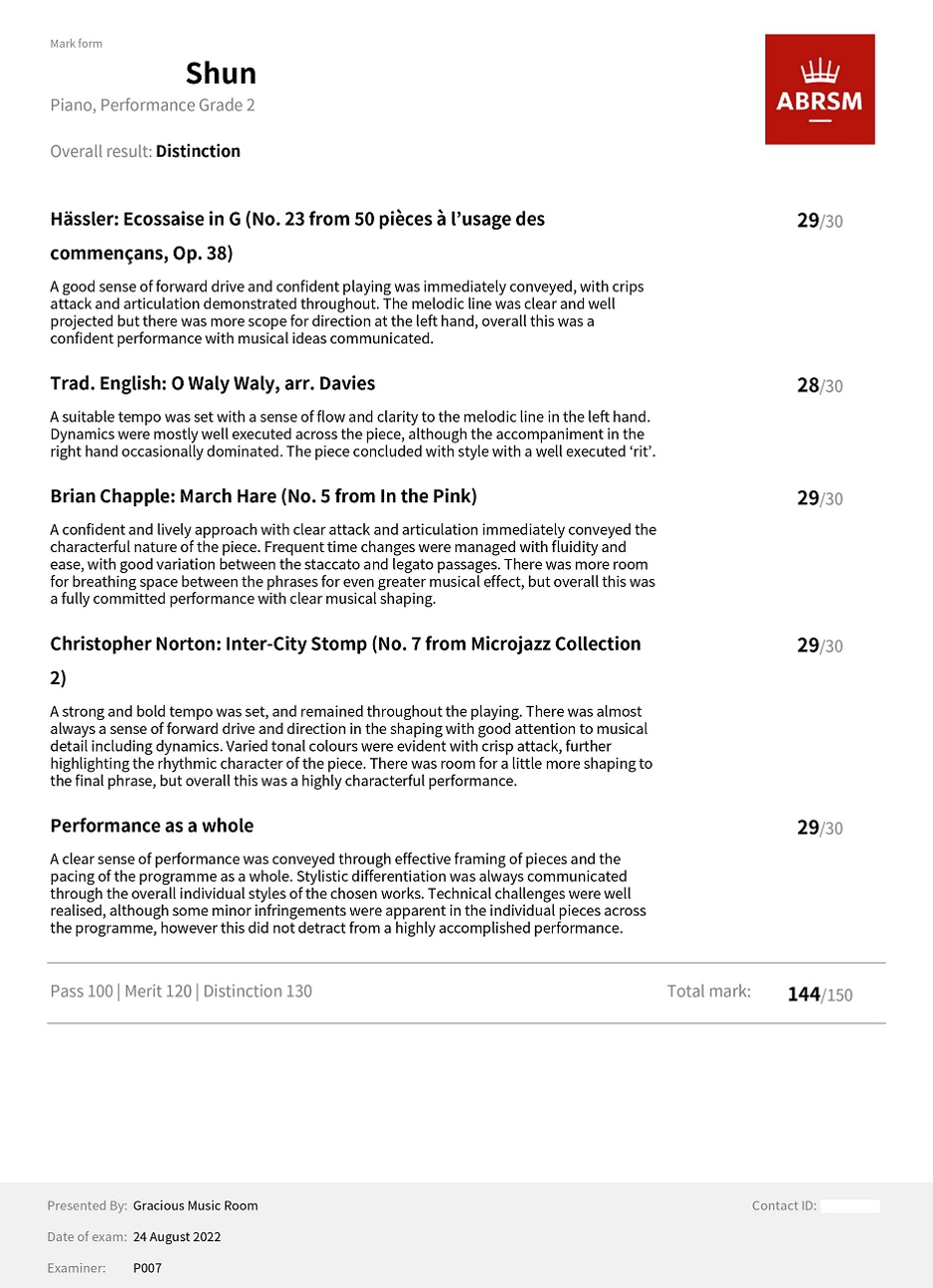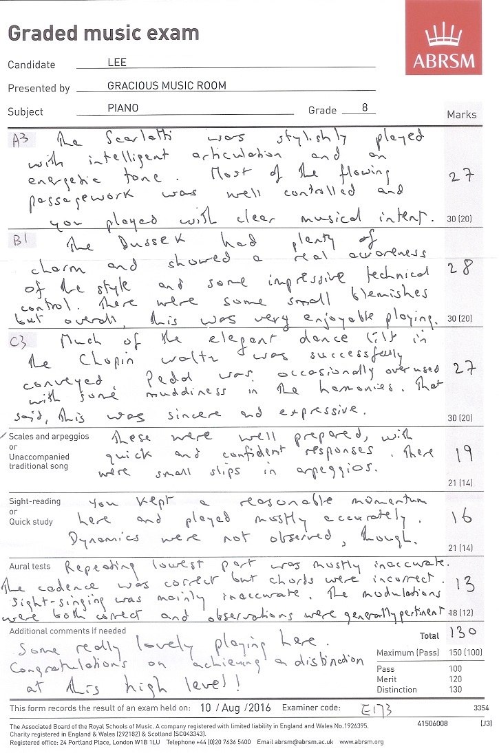 鋼琴科學生成績