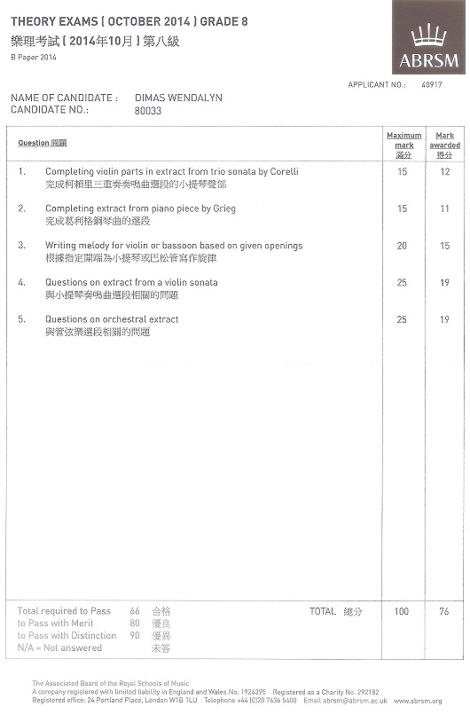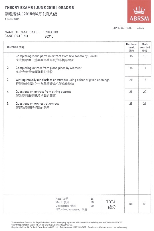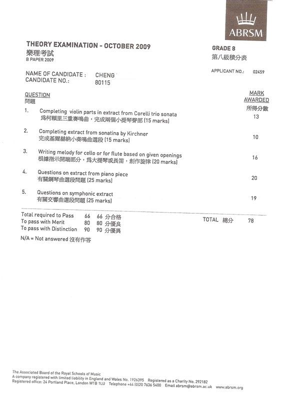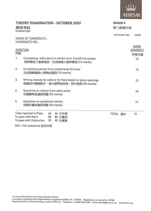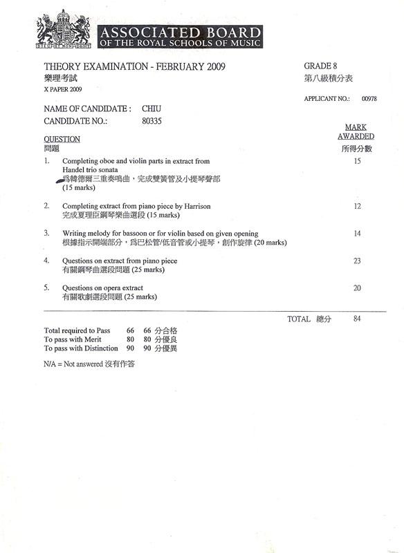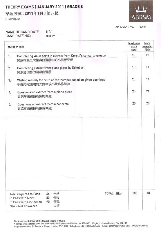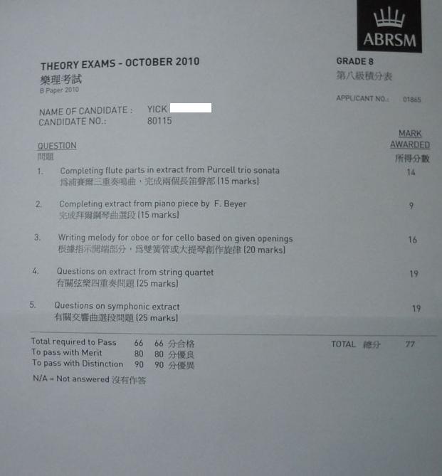 (八級) 樂理科學生成績